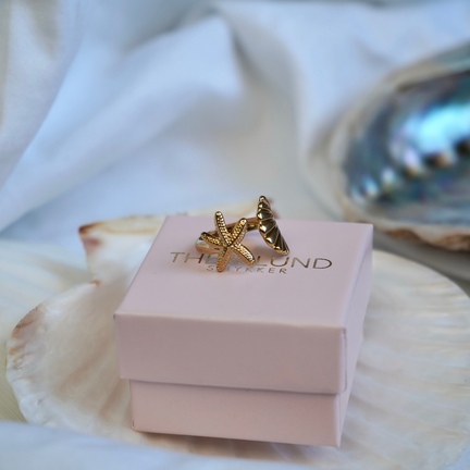 Den smukke Aqua ring er designet med en musling og en søstjerne på, hvilket gør den SÅ sød og sommerlig.