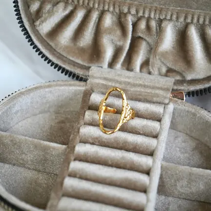 Ringen er lavet i vandfast forgyldt rustfrit stål.