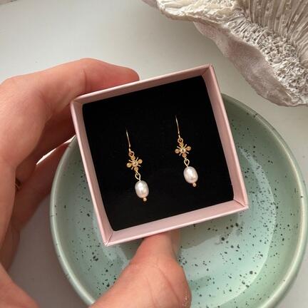 Smukke øreringe med lidt længde og de smukkeste ferskvandsperler.