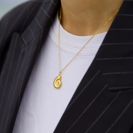 Kæden og vedhænget er lavet i rustfrit stål med vandfast 18 karat forgyldning.
